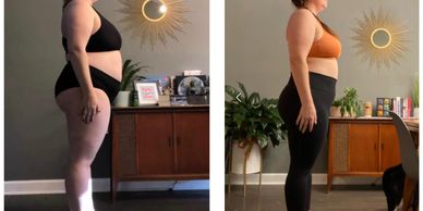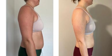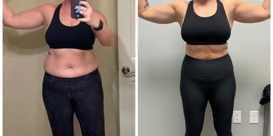Starting with 75Hard, Emily wanted accountability more than anything. We paired this with macro goals and a custom training program. We've seen major physical changes over the last year and a huge confidence boost! Same wieght in both pics, but different body composition!